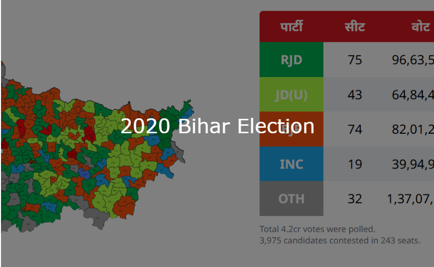 कुल 243 सीटों वाली विधानसभा में NDA ने 202 सीटें जीतकर भारी बहुमत हासिल किया, वहीं महागठबंधन मात्र 35 सीटों पर सिमट गया।