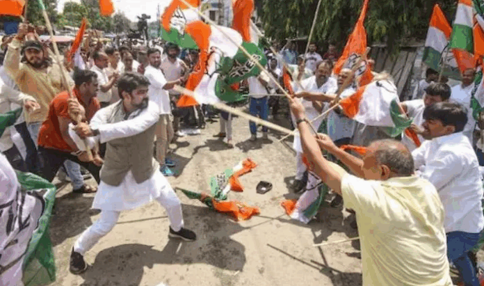 बीजेपी कार्यकर्ता हाथों में तख्तियां लिए हुए थे, जिन पर “मां का अपमान, कांग्रेस की पहचान” और “मां का अपमान नहीं सहेगा बिहार” जैसे नारे लिखे थे। जैसे ही प्रदर्शनकारी कांग्रेस कार्यालय के पास पहुंचे, माहौल तनावपूर्ण हो गया। आरोप है कि बीजेपी के कुछ कार्यकर्ता कांग्रेस दफ्तर के भीतर घुसने की कोशिश करने लगे, जिसके बाद कांग्रेस कार्यकर्ताओं ने उन्हें खदेड़ना शुरू किया। यहीं से विवाद ने हिंसक रूप ले लिया।