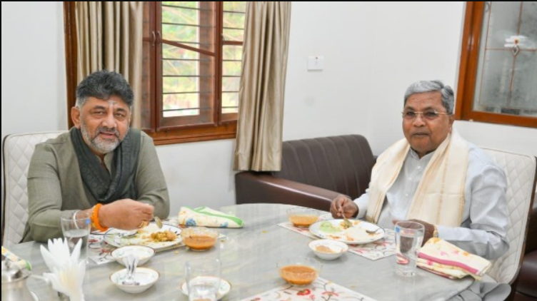 कर्नाटक में मुख्यमंत्री पद को लेकर चल रही तनावपूर्ण खींचतान के बीच, उपमुख्यमंत्री डी.के. शिवकुमार ने आज (29 नवंबर) सुबह मुख्यमंत्री सिद्धारमैया के आवास पर नाश्ते के दौरान महत्वपूर्ण बातचीत की है. इस बैठक के बाद शिवकुमार दिल्ली के लिए रवाना होंगे, जहां कांग्रेस हाईकमान के साथ मुख्यमंत्री पद के भविष्य पर चर्चा होनी है.
