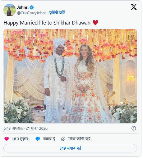 शादी स्टार-स्टडेड बताई जा रही है, क्रिकेट व बॉलीवुड हस्तियां शामिल। फैंस ‘गब्बर’ को बधाई दे रहे हैं। धवन ने पोस्ट में लिखा, “नए अध्याय की खूबसूरत शुरुआत।” यह क्रॉस-कल्चरल लव स्टोरी प्रेरणा दे रही है।